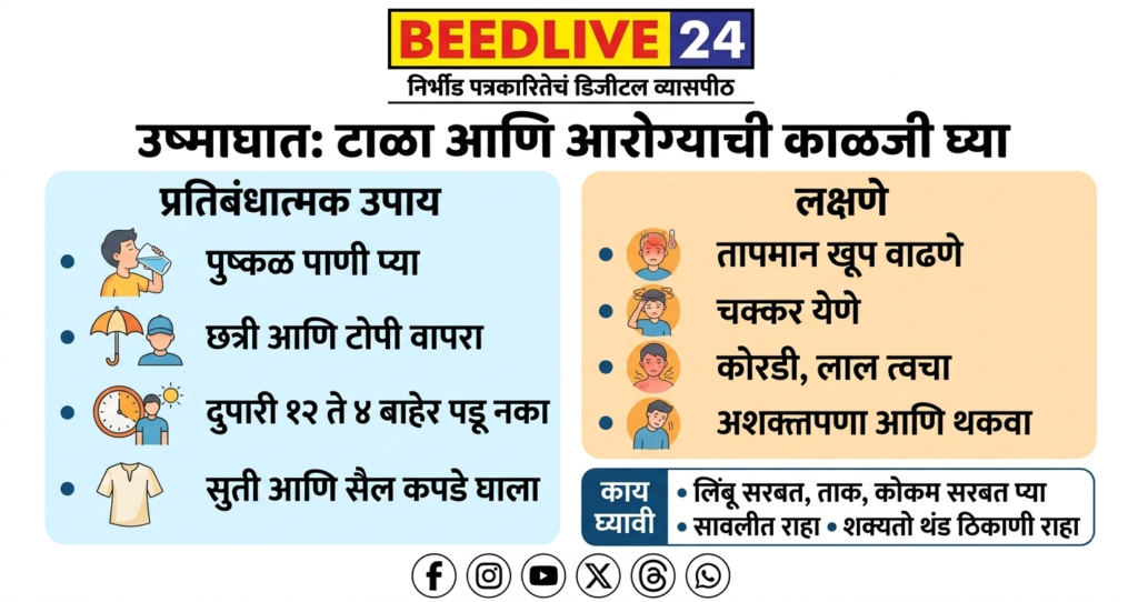 वाढत्या तापमानामुळे उष्माघाताचा (Heat Stroke) धोका वाढला आहे. स्वतःला सुरक्षित ठेवण्यासाठी खालील उपाययोजना नक्की करा: